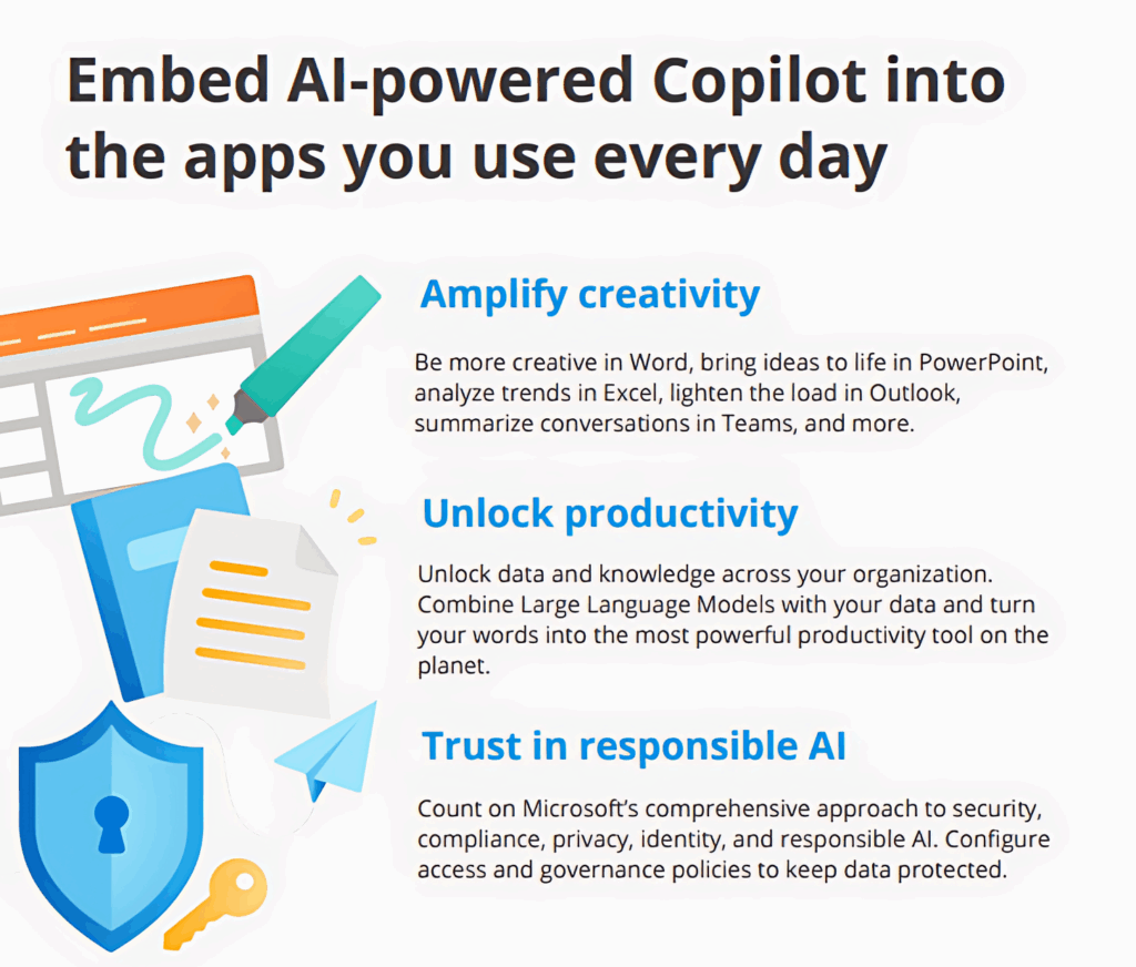 When using generative AI tools, always choose secure, private options for handling sensitive business data. For example, Microsoft Copilot offers two versions: Web and Work. Make sure you and your team use the “Work” version to keep confidential information protected.